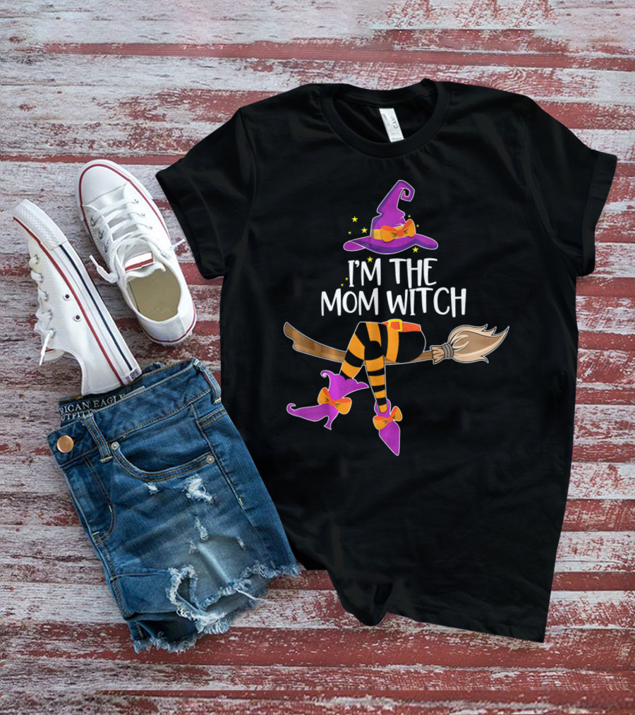 I’m The Mom Witch Halloween Matching Wizard Hat And Broomstick T-Shirt