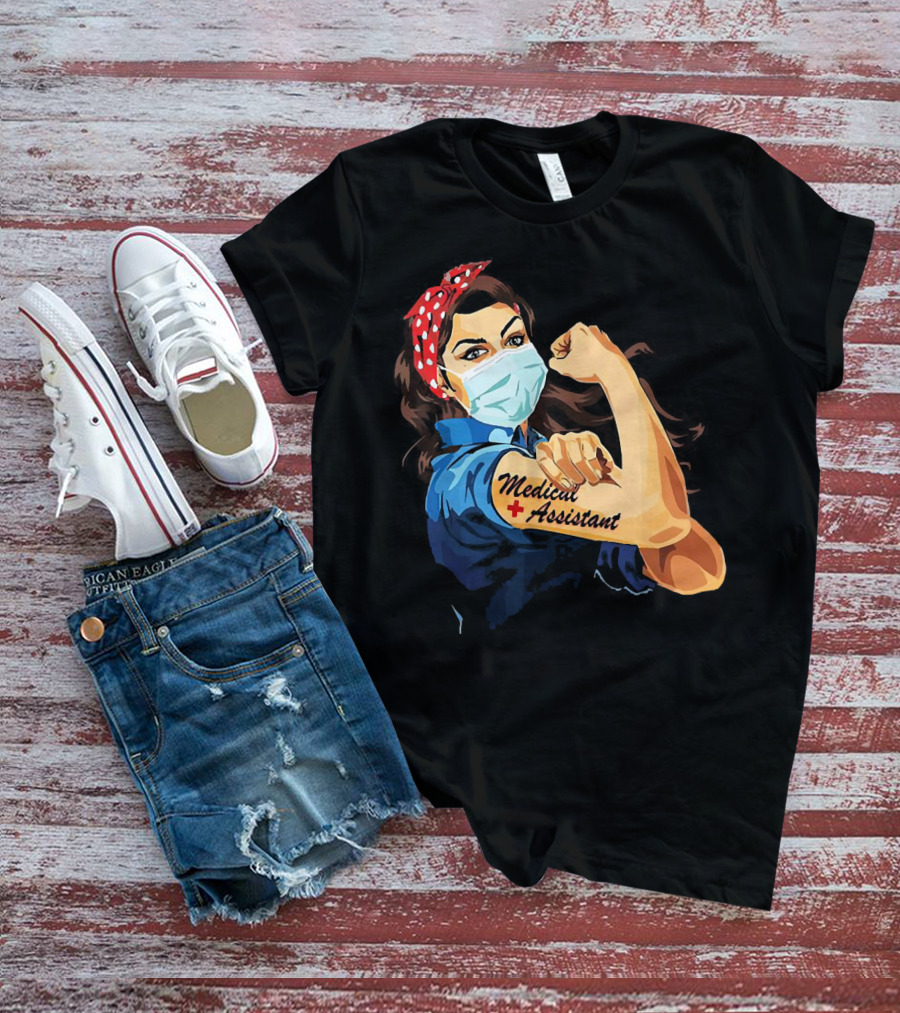 The Medical Assistant Strong Woman Face Mask Iconic Shirt offers a regular fit. Made from 100% ring-spun cotton that is pre-shrunk to help maintain size and shape after washing. Features reinforced construction details for durability. Available in U.S. standard sizes S-5XL to accommodate various body types.