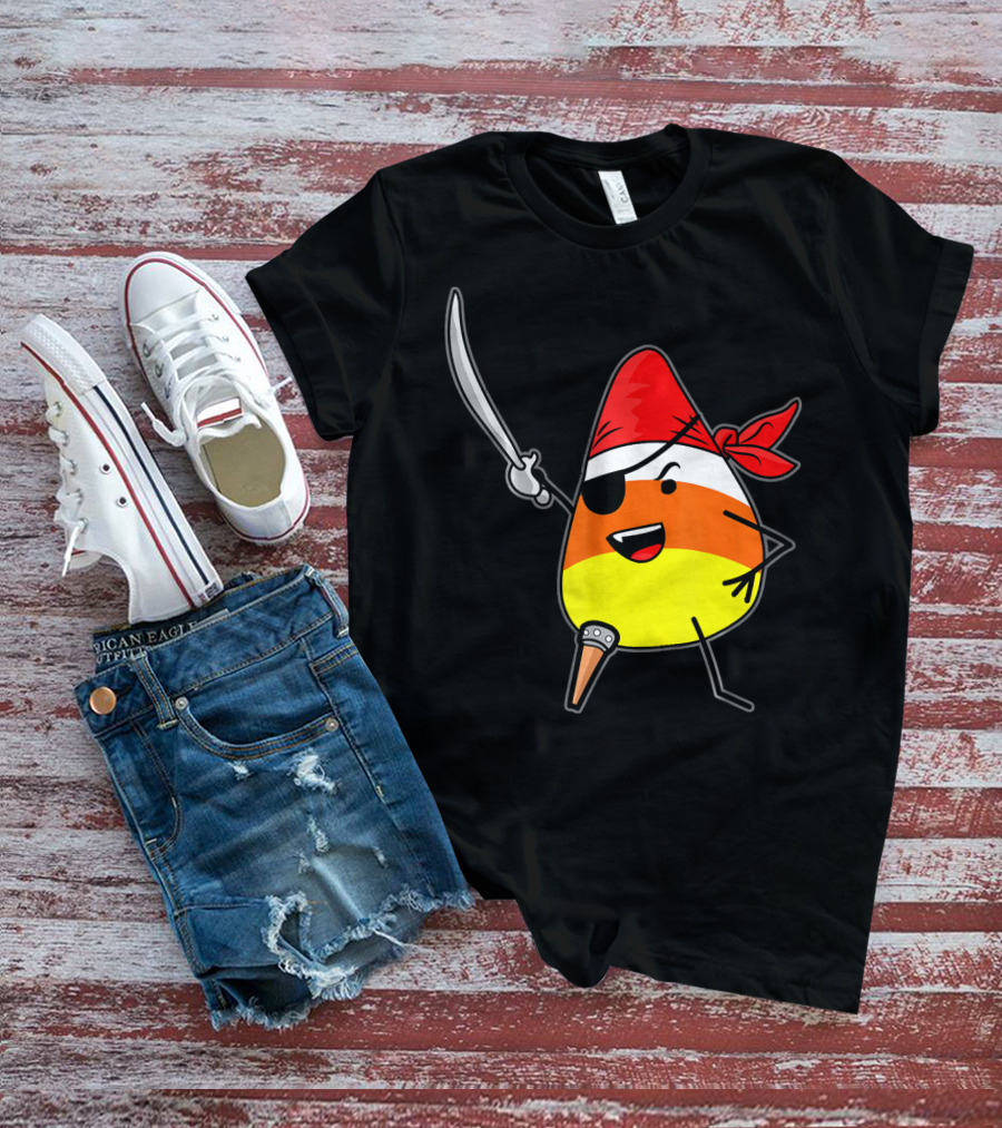 Candy Corn Pirate With Jolly Roger Sword Halloween T-Shirt