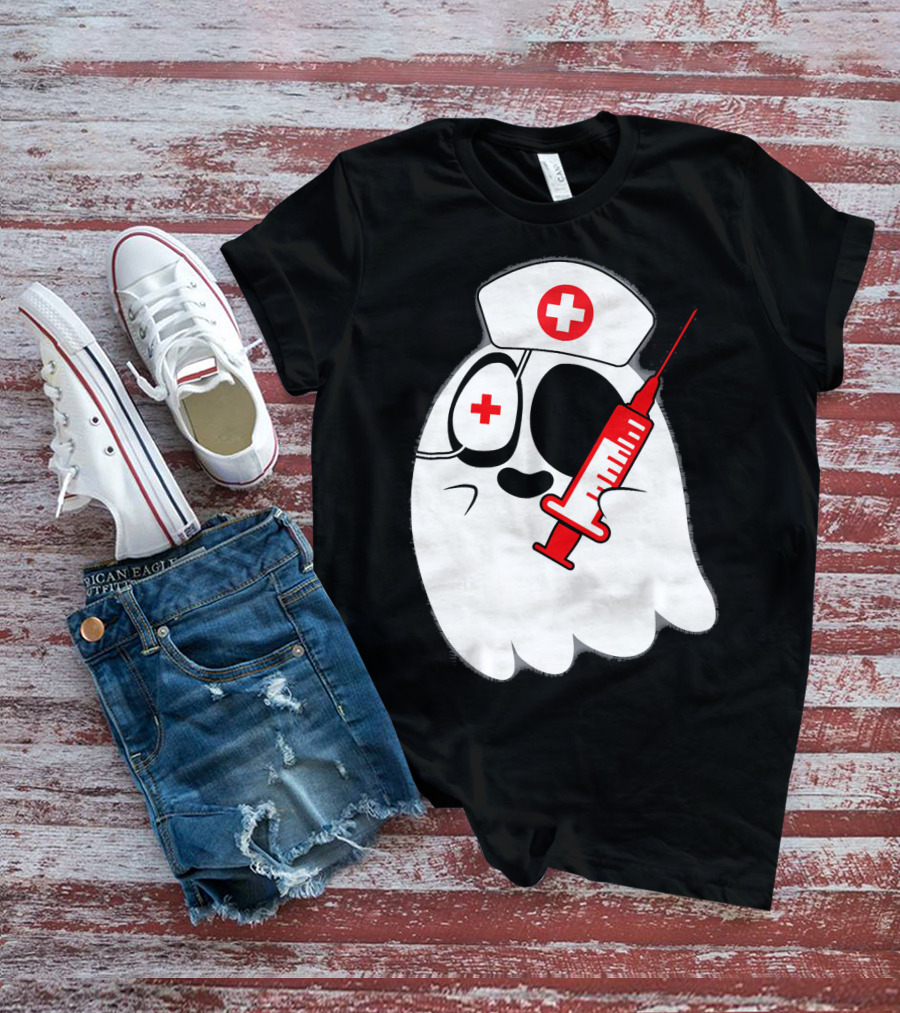 Funny Ghost Nurse Emoji With Syringe Nurse Hat T-Shirt
