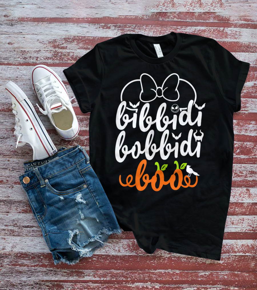 Bibbidi Bobbidi Boo Halloween Bats Jack-O'-Lantern Pumpkin Bow T-Shirt