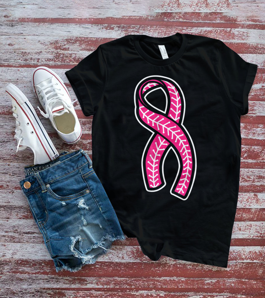 Pink Ribbon Baseball Stitching Breast Cancer Awareness T-Shirt
