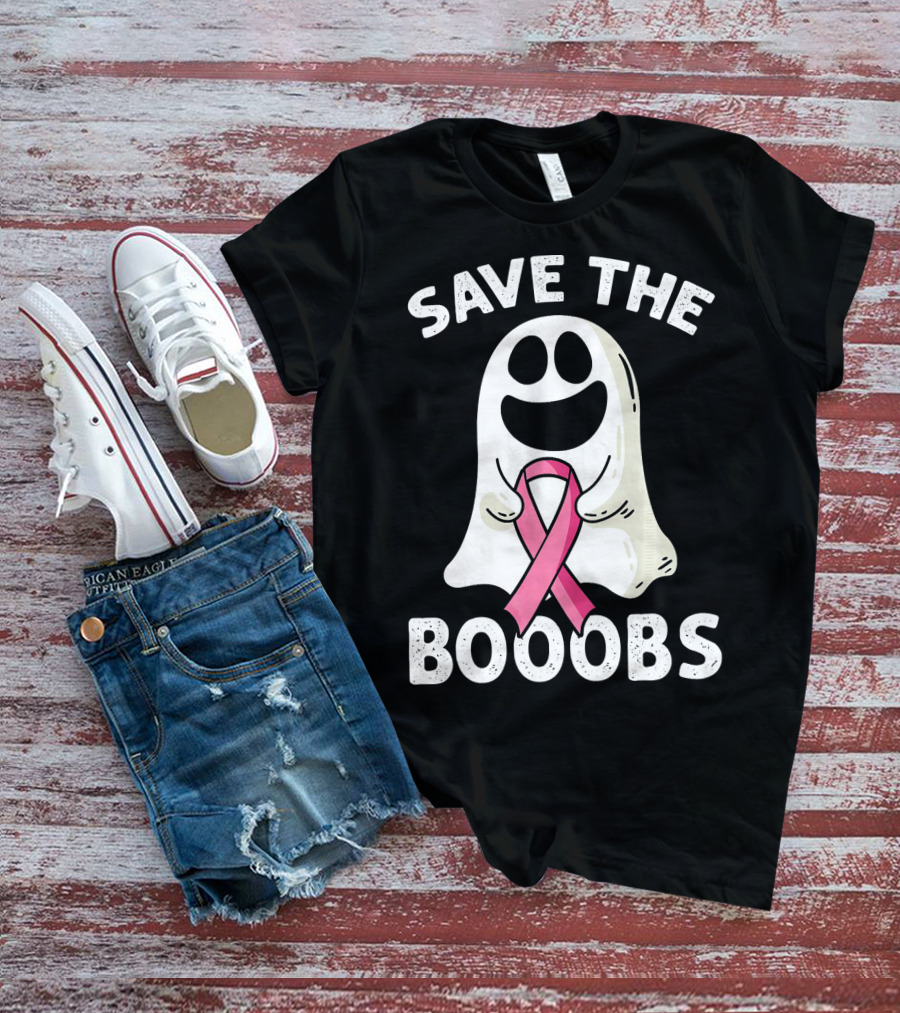 Save The Boooobs Funny Ghost Pink Ribbon Breast Cancer Awareness T-Shirt