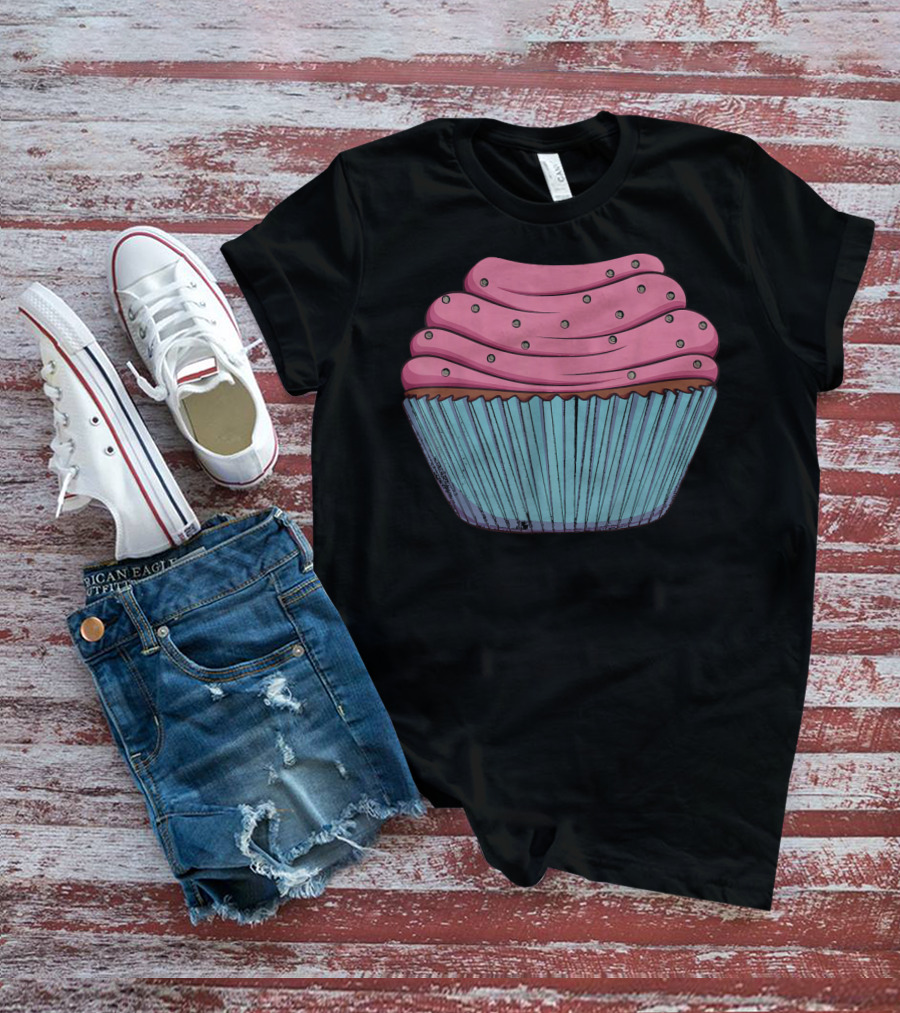 The Cupcake Pink Swirled Icing Blue Wrapper Shirt offers a regular fit. Made from 100% ring-spun cotton that is pre-shrunk to help maintain size and shape after washing. Features reinforced construction details for durability. Available in U.S. standard sizes S-5XL to accommodate various body types.