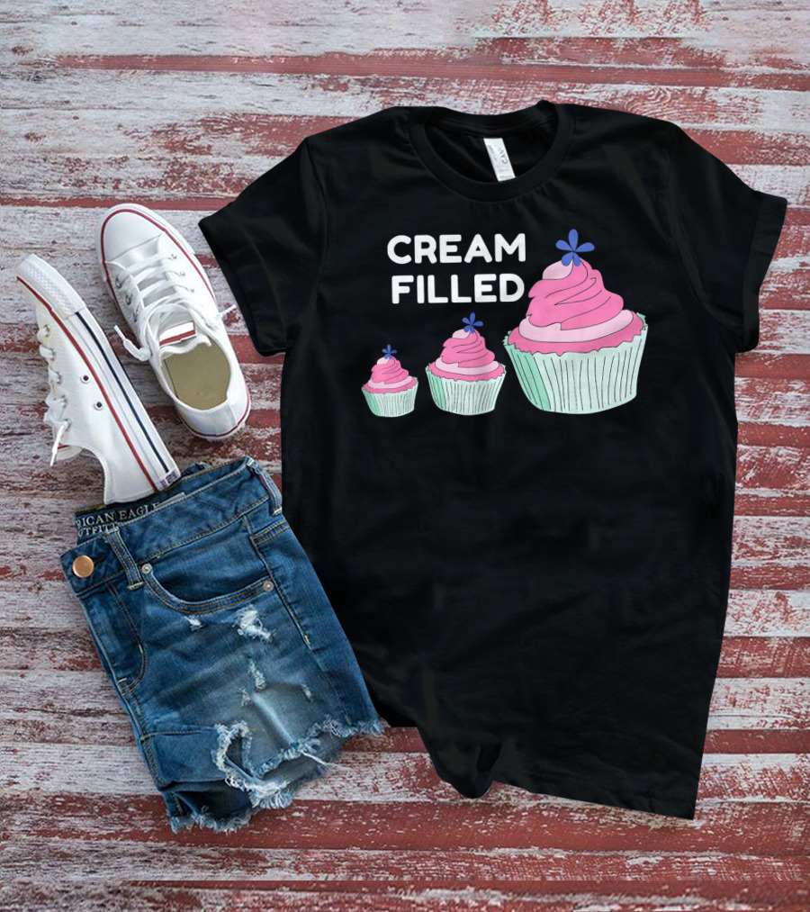 The CREAM FILLED Cupcake Lover Trio with Pink Frosting and Blue Flower Shirt offers a regular fit. Made from 100% ring-spun cotton that is pre-shrunk to help maintain size and shape after washing. Features reinforced construction details for durability. Available in U.S. standard sizes S-5XL to accommodate various body types.