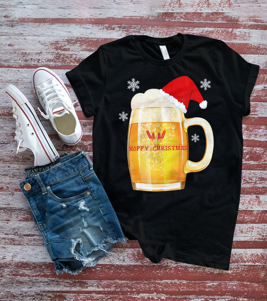 Hoppy Christmas Beer Santa Mug With Snowflakes T-Shirt