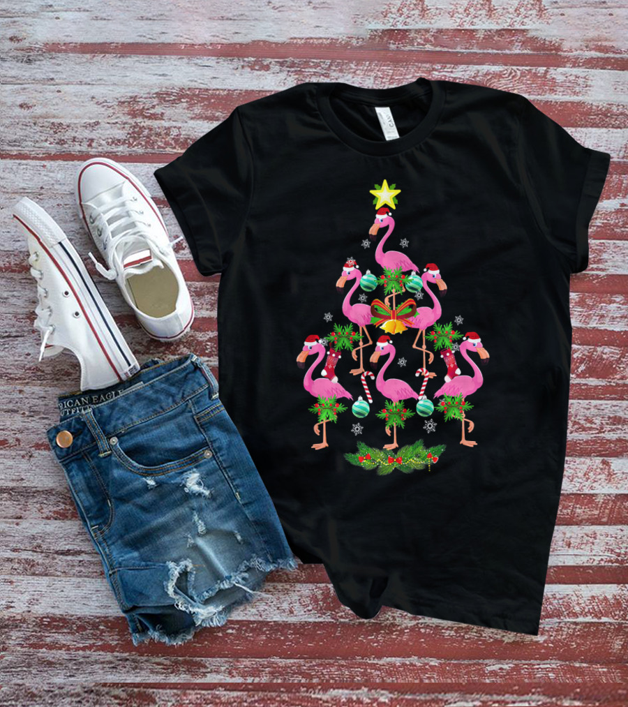 The Star Flamingo Christmas Tree Santa Hat Ornaments Shirt offers a regular fit. Made from 100% ring-spun cotton that is pre-shrunk to help maintain size and shape after washing. Features reinforced construction details for durability. Available in U.S. standard sizes S-5XL to accommodate various body types.