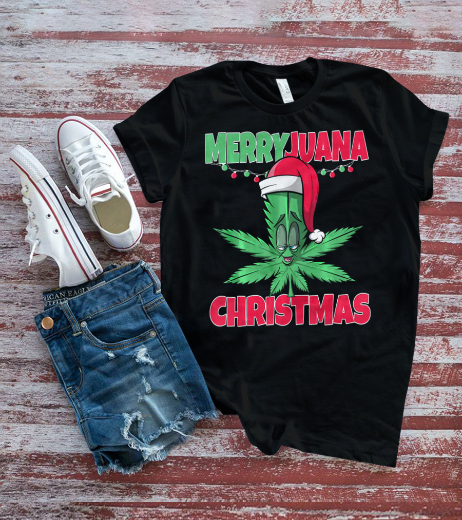 Merryjuana Christmas Funny Santa Hat Marijuana Leaf T-Shirt