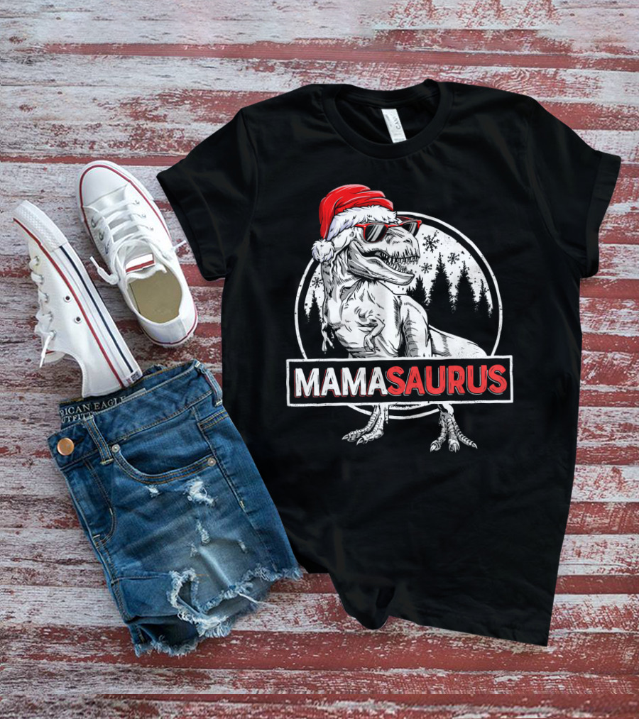 Mamasaurus Dinosaur Christmas Santa Hat Sunglasses T-Shirt