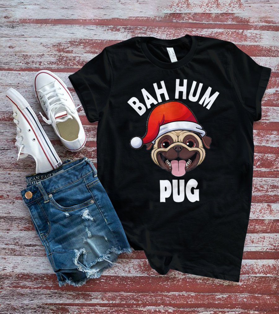 BAH HUM PUG Christmas Pug Lover Santa Hat T-Shirt