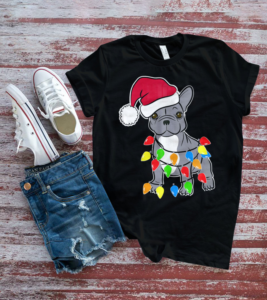The Santa French Bulldog with Christmas Lights Shirt offers a regular fit. Made from 100% ring-spun cotton that is pre-shrunk to help maintain size and shape after washing. Features reinforced construction details for durability. Available in U.S. standard sizes S-5XL to accommodate various body types.