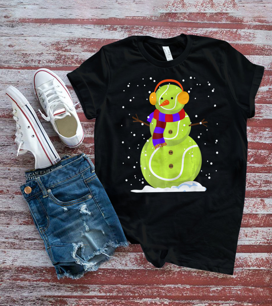 Dabbing Tennis Ball Snowman With Scarf And Earmuffs T-Shirt