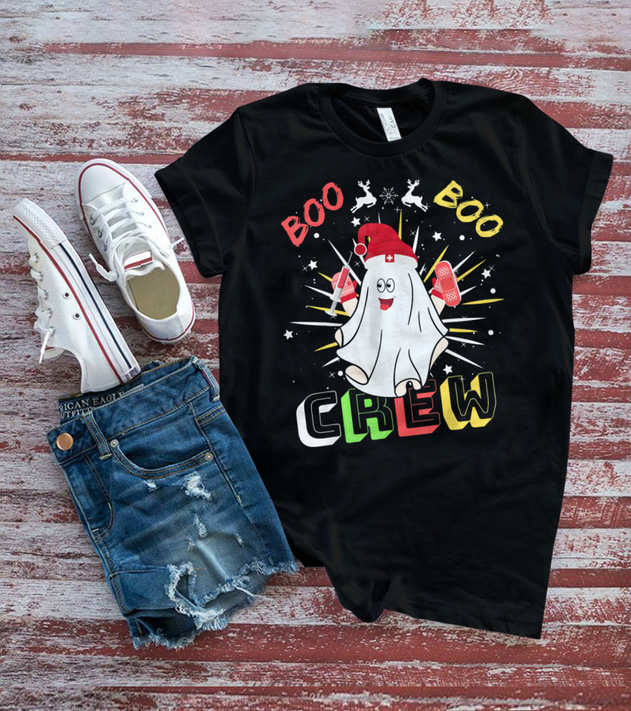 Boo Boo Crew Christmas Nurse Ghost With Bandages And Reindeer T-Shirt