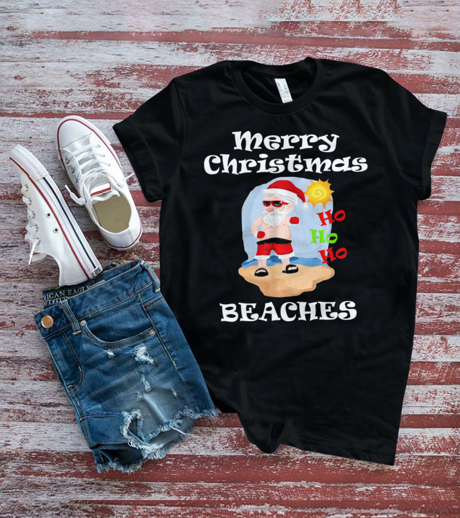 Merry Christmas Beaches Santa Ho Ho Ho Sun And Sand T-Shirt
