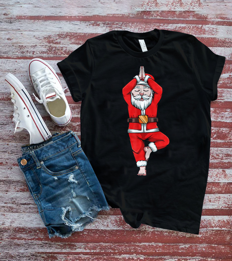 Funny Santa Claus Yoga Pose Meditation Tree Zen Relaxation T-Shirt