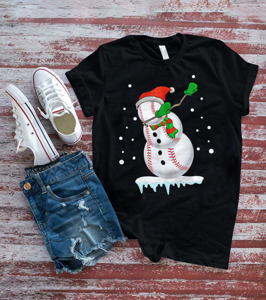 Dabbing Snowman Baseball Christmas Fun T-Shirt