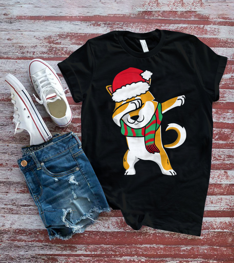 Dabbing Shiba Dog Christmas Santa Hat Scarf T-Shirt