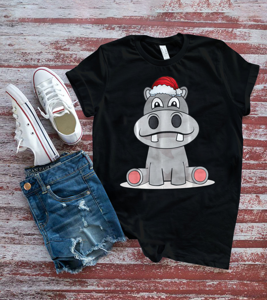 Hippopotamus Christmas Happy Hippo Santa Hat T-Shirt