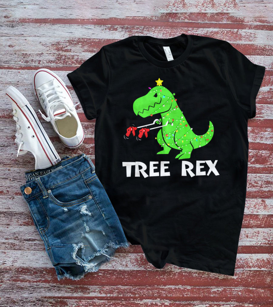 Tree Rex Funny Christmas Dinos Wrapped In Lights T-Shirt