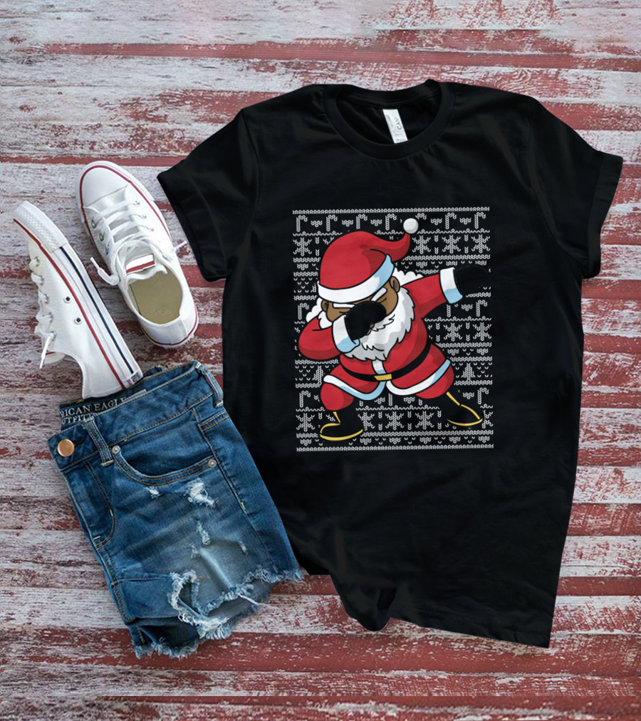Christmas Black Santa Dabbing Ugly T-Shirt