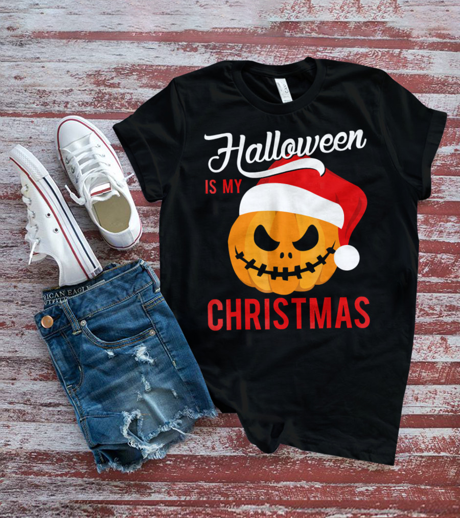 Halloween Is My Christmas Pumpkin Santa Hat T-Shirt