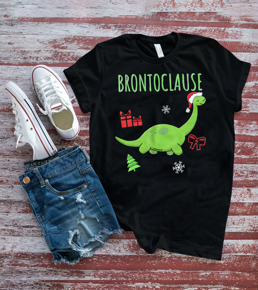 Brontoclause Christmas Dinosaur With Santa Hat And Holiday Gifts T-Shirt