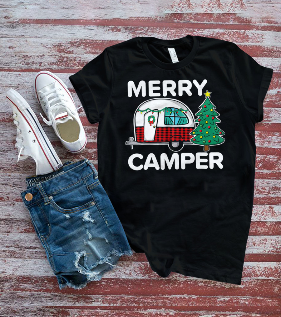 Merry Camper Vintage Camper Christmas Tree Retro Holiday Decor T-Shirt