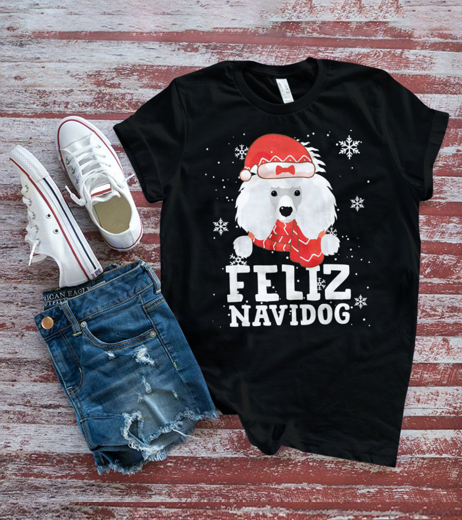 Feliz Navidog Poodle Dog Snowflakes Santa Hat Red Scarf T-Shirt