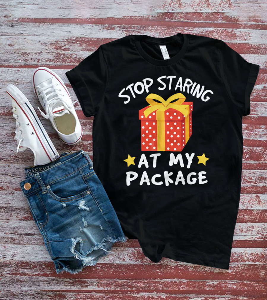 Stop Staring At My Package Funny Christmas Adult Humor Pun T-Shirt