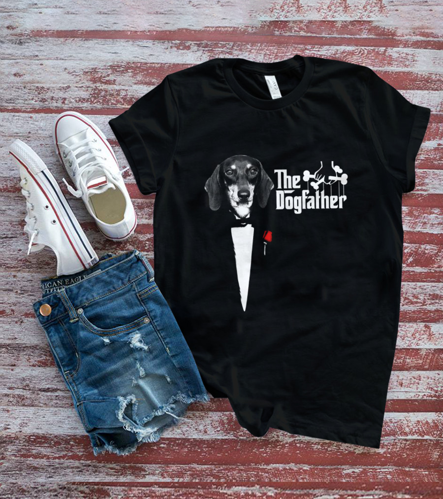 The Dogfather Dashund Tuxedo Rose Puppeteer T-Shirt