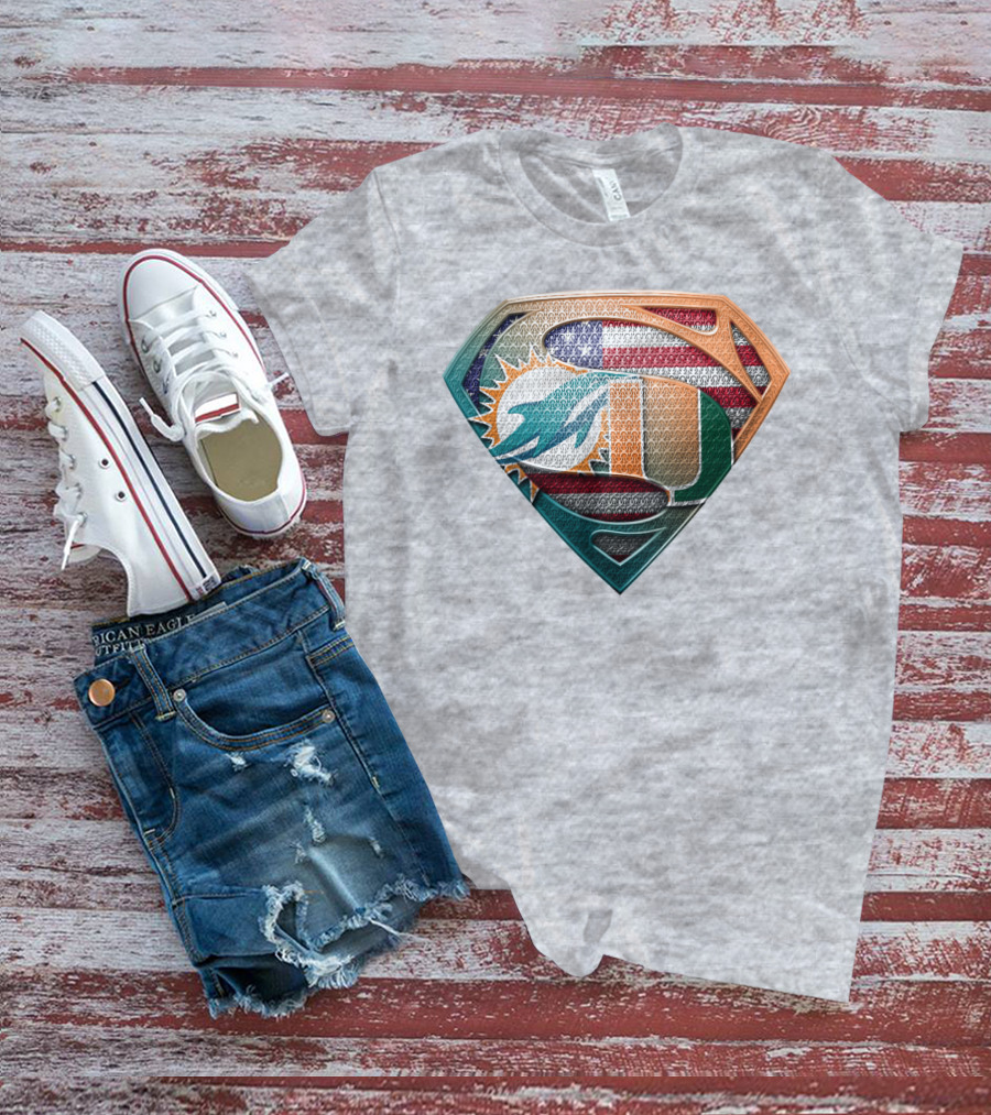 The Miami Dolphins University Of Miami Superman Logo With American Flag Shirt offers a regular fit. Made from 100% ring-spun cotton that is pre-shrunk to help maintain size and shape after washing. Features reinforced construction details for durability. Available in U.S. standard sizes S-5XL to accommodate various body types.