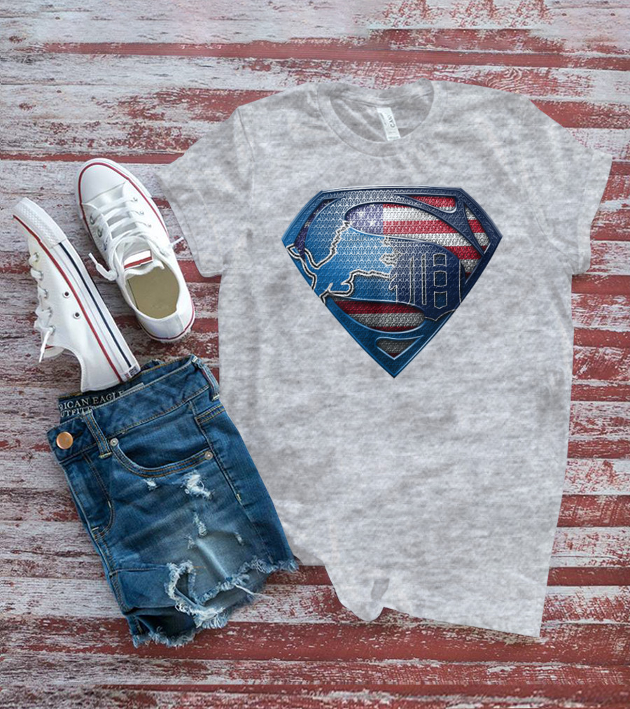 Detroit Lions American Flag Superhero Emblem T-Shirt