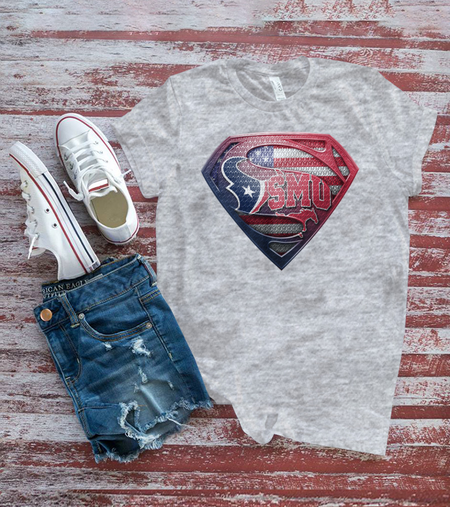 Smu Texas Superhero Shield With American Flag Colors T-Shirt