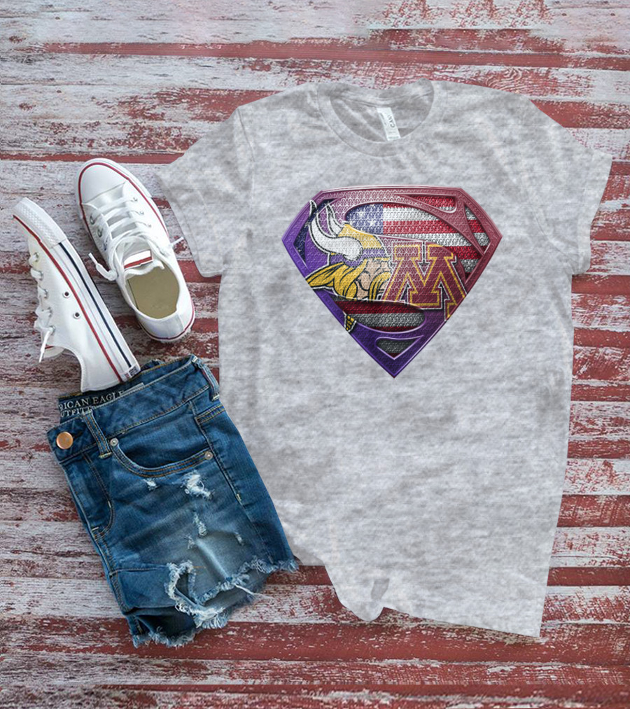 The Minnesota Vikings And Golden Gophers American Flag Superman Shirt offers a regular fit. Made from 100% ring-spun cotton that is pre-shrunk to help maintain size and shape after washing. Features reinforced construction details for durability. Available in U.S. standard sizes S-5XL to accommodate various body types.