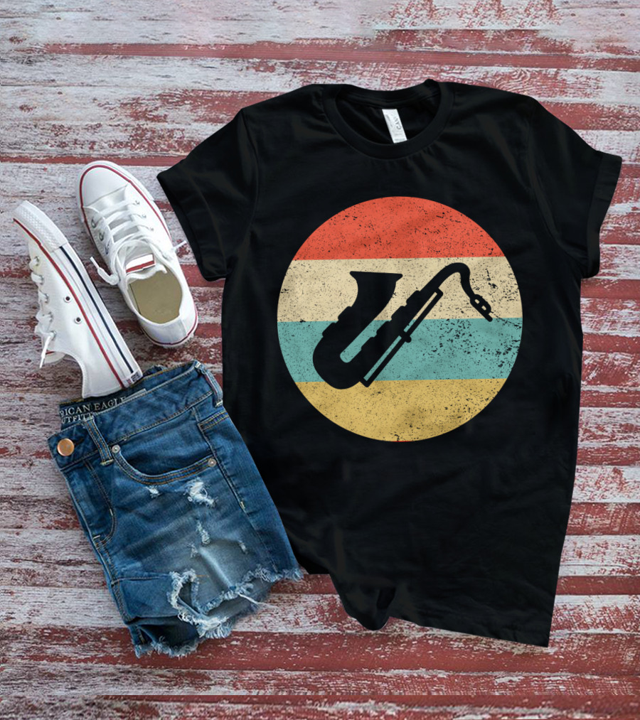 The Retro Saxophone Circle Stripes Vintage Shirt offers a regular fit. Made from 100% ring-spun cotton that is pre-shrunk to help maintain size and shape after washing. Features reinforced construction details for durability. Available in U.S. standard sizes S-5XL to accommodate various body types.