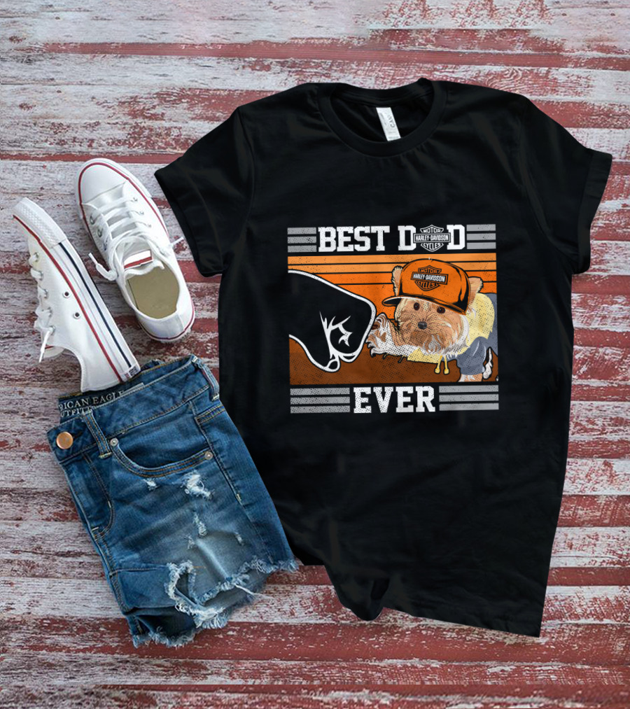Best Dad Ever Motor Harley Davidson Cycles Yorkshire Terrier T-Shirt