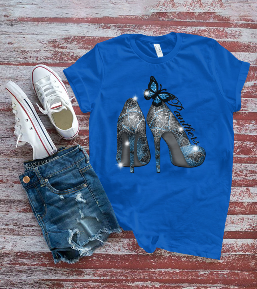 The Panthers High Heels With Butterfly Accents Shirt offers a regular fit. Made from 100% ring-spun cotton that is pre-shrunk to help maintain size and shape after washing. Features reinforced construction details for durability. Available in U.S. standard sizes S-5XL to accommodate various body types.