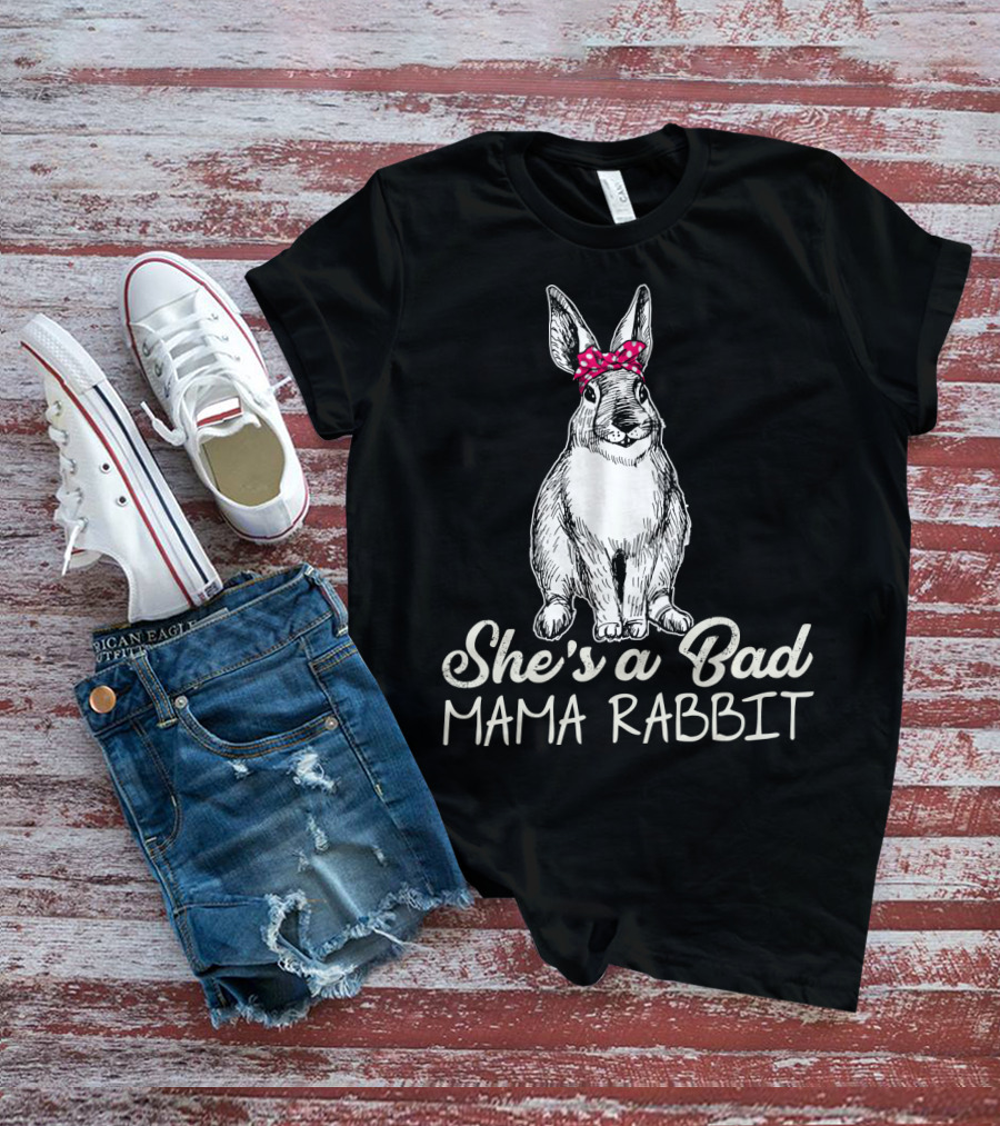 She's A Bad Mama Rabbit With Polka Dot Bow T-Shirt