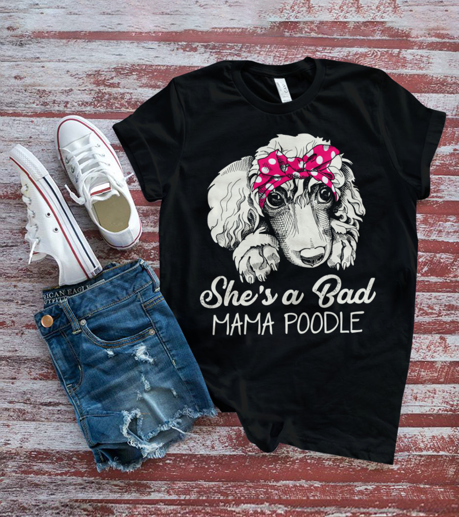 She's A Bad Mama Poodle With Pink Polka Dot Headband T-Shirt