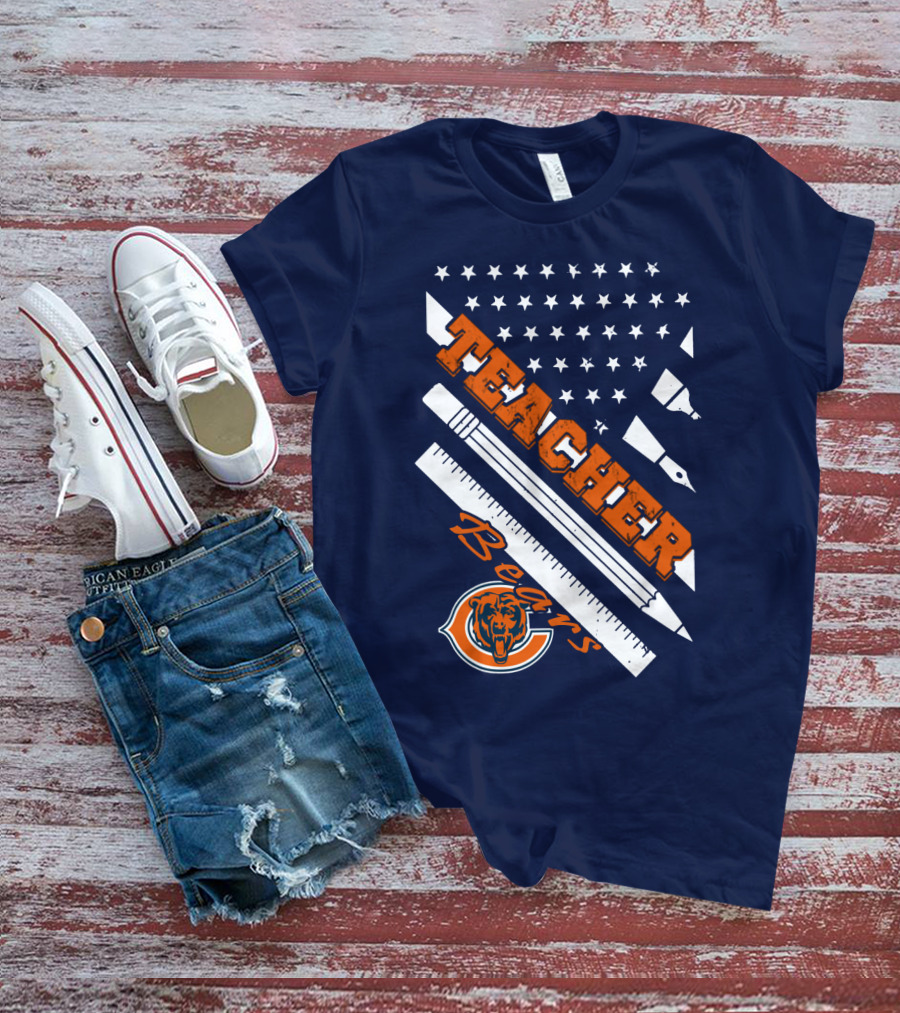 The Chicago Bears Teacher American Flag Ruler And Pens Shirt offers a regular fit. Made from 100% ring-spun cotton that is pre-shrunk to help maintain size and shape after washing. Features reinforced construction details for durability. Available in U.S. standard sizes S-5XL to accommodate various body types.
