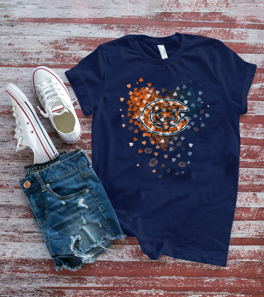Chicago Bears Heart Logo In Orange And Navy Hearts T-Shirt