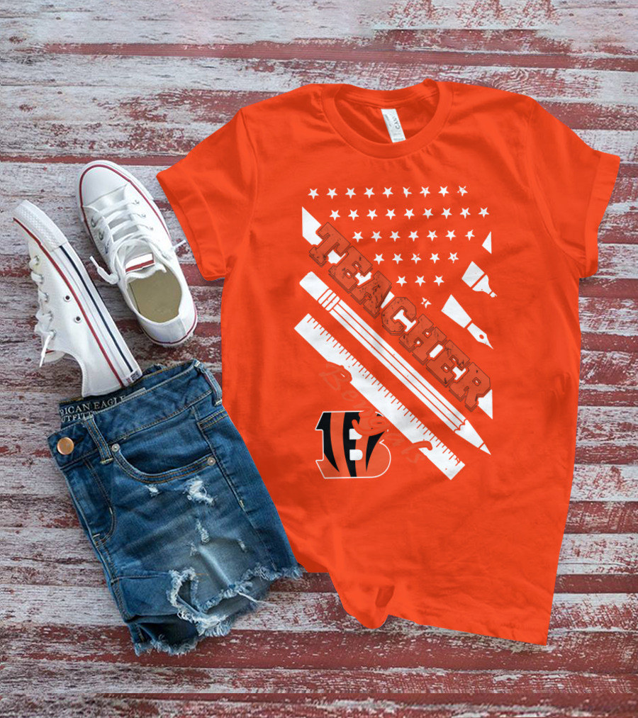 The Cincinnati Bengals Teacher Stars Stripes Ruler Shirt offers a regular fit. Made from 100% ring-spun cotton that is pre-shrunk to help maintain size and shape after washing. Features reinforced construction details for durability. Available in U.S. standard sizes S-5XL to accommodate various body types.