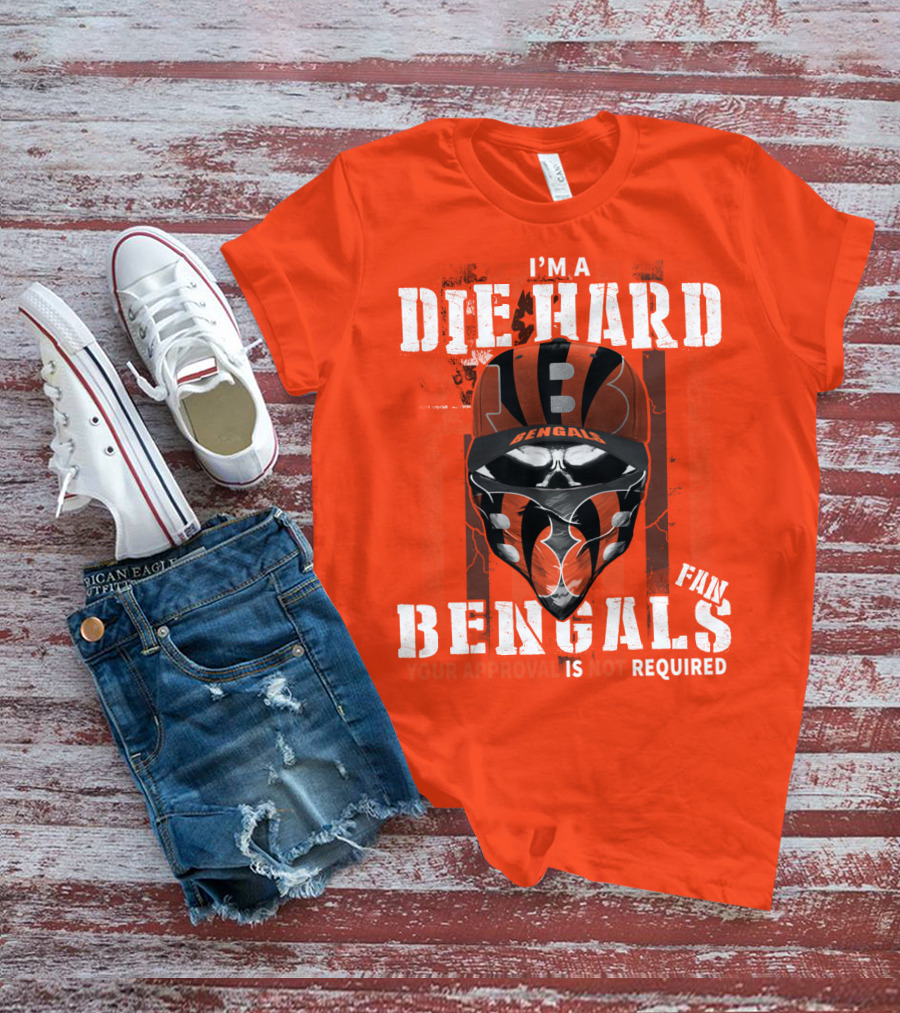The I'm A Die Hard Bengals Fan Approval Not Required Shirt offers a regular fit. Made from 100% ring-spun cotton that is pre-shrunk to help maintain size and shape after washing. Features reinforced construction details for durability. Available in U.S. standard sizes S-5XL to accommodate various body types.