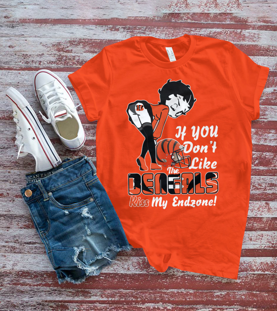 The If You Don't Like The Cincinnati Bengals Kiss My Endzone Shirt offers a regular fit. Made from 100% ring-spun cotton that is pre-shrunk to help maintain size and shape after washing. Features reinforced construction details for durability. Available in U.S. standard sizes S-5XL to accommodate various body types.