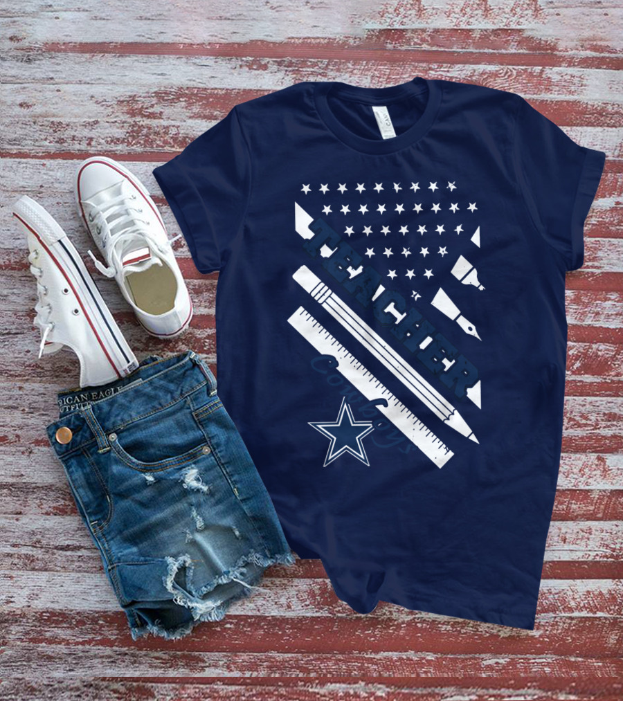 The Teacher Dallas Cowboys Star American Flag Ruler And Pen Shirt offers a regular fit. Made from 100% ring-spun cotton that is pre-shrunk to help maintain size and shape after washing. Features reinforced construction details for durability. Available in U.S. standard sizes S-5XL to accommodate various body types.