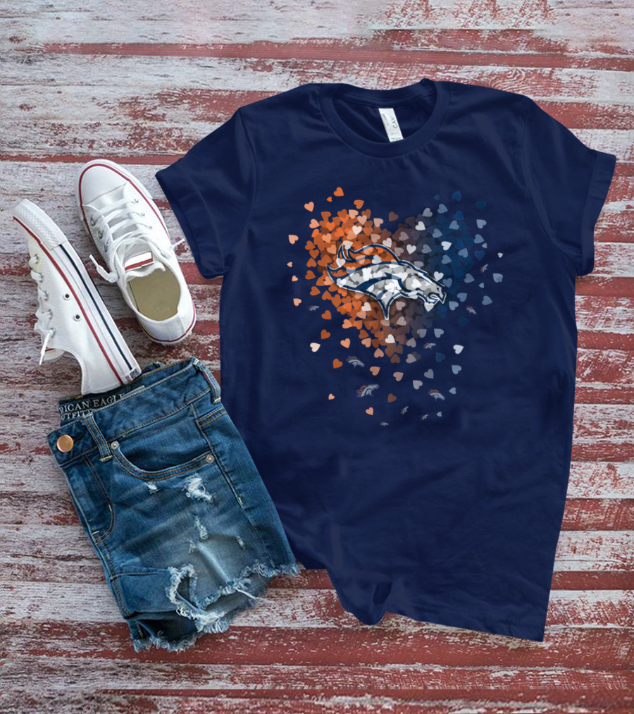Denver Broncos Heart Logo With Orange And Blue Hearts T-Shirt