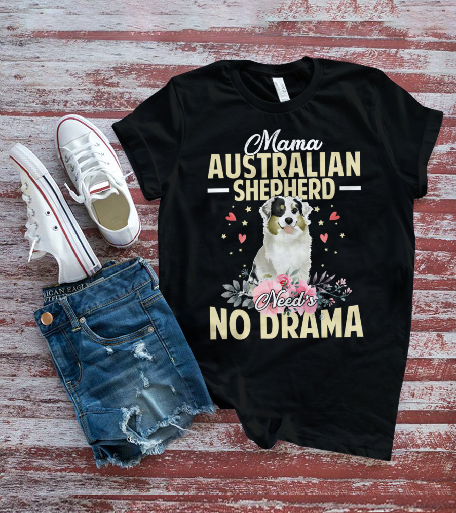 Mama Australian Shepherd Needs No Drama Hearts And Flowers T-Shirt