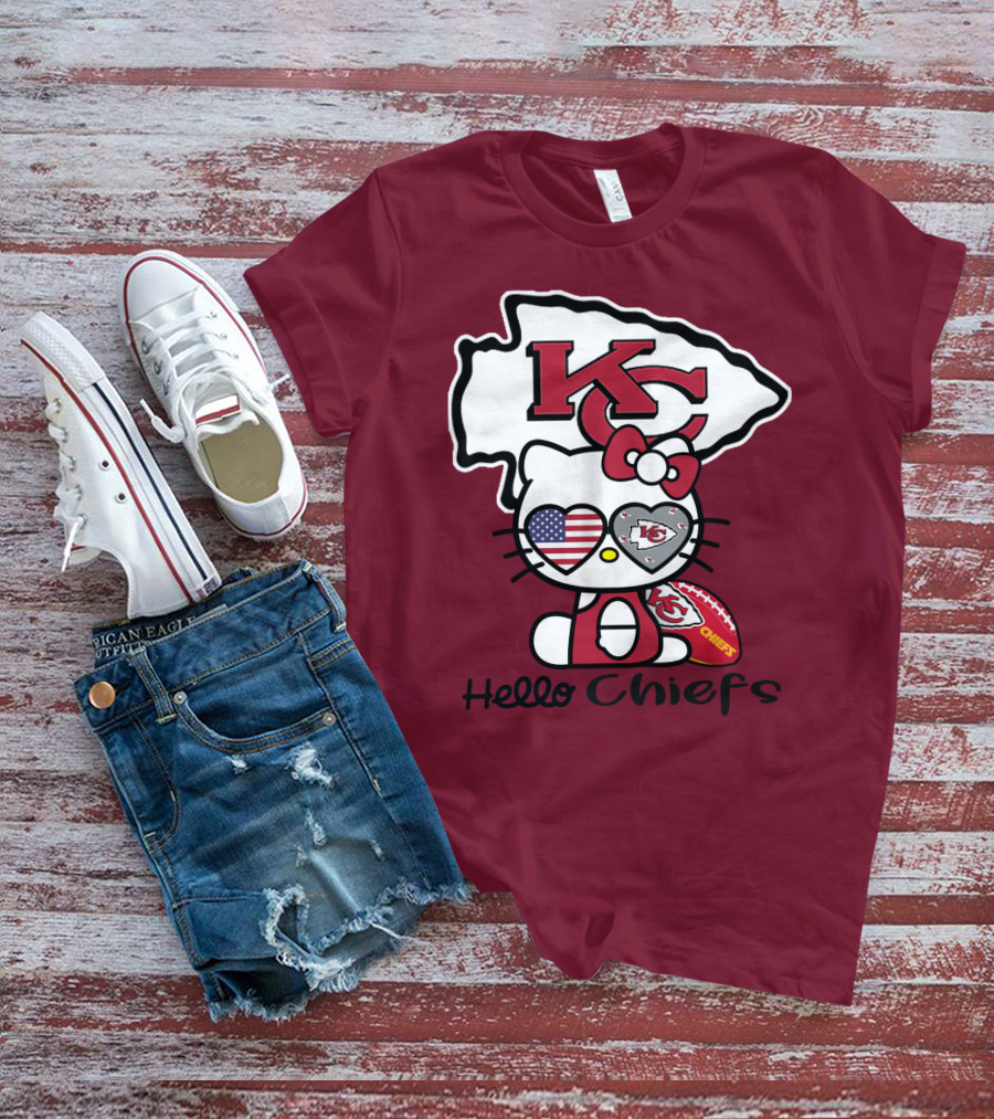 Hello Chiefs Kc Hello Kitty Heart Football American Flag T-Shirt