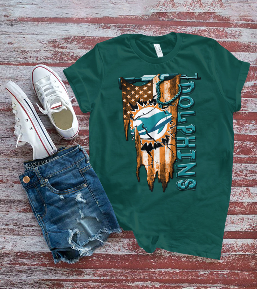 Miami Dolphins Flag And Logo Style With Stars And Stripes T-Shirt