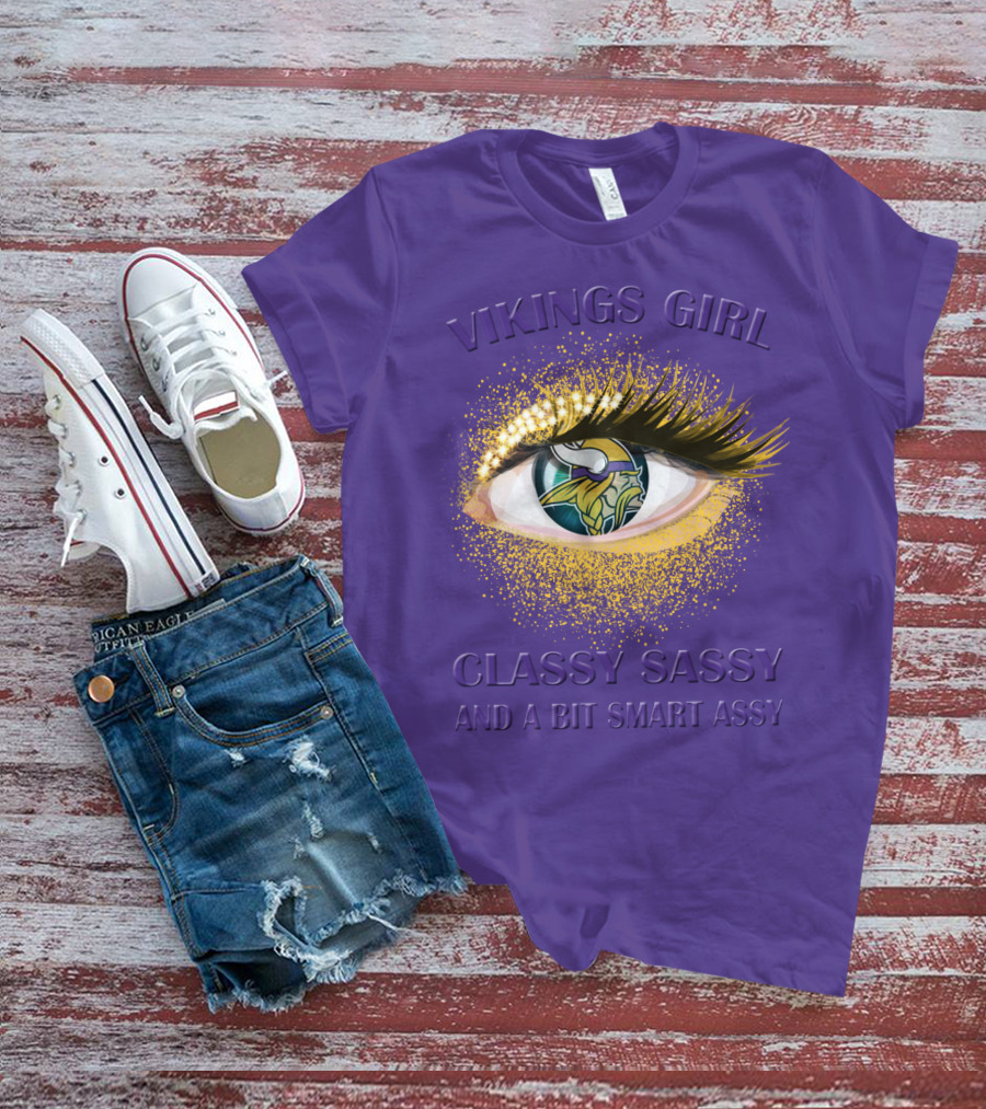 The Vikings Girl Classy Sassy And A Bit Smart Assy Shirt offers a regular fit. Made from 100% ring-spun cotton that is pre-shrunk to help maintain size and shape after washing. Features reinforced construction details for durability. Available in U.S. standard sizes S-5XL to accommodate various body types.